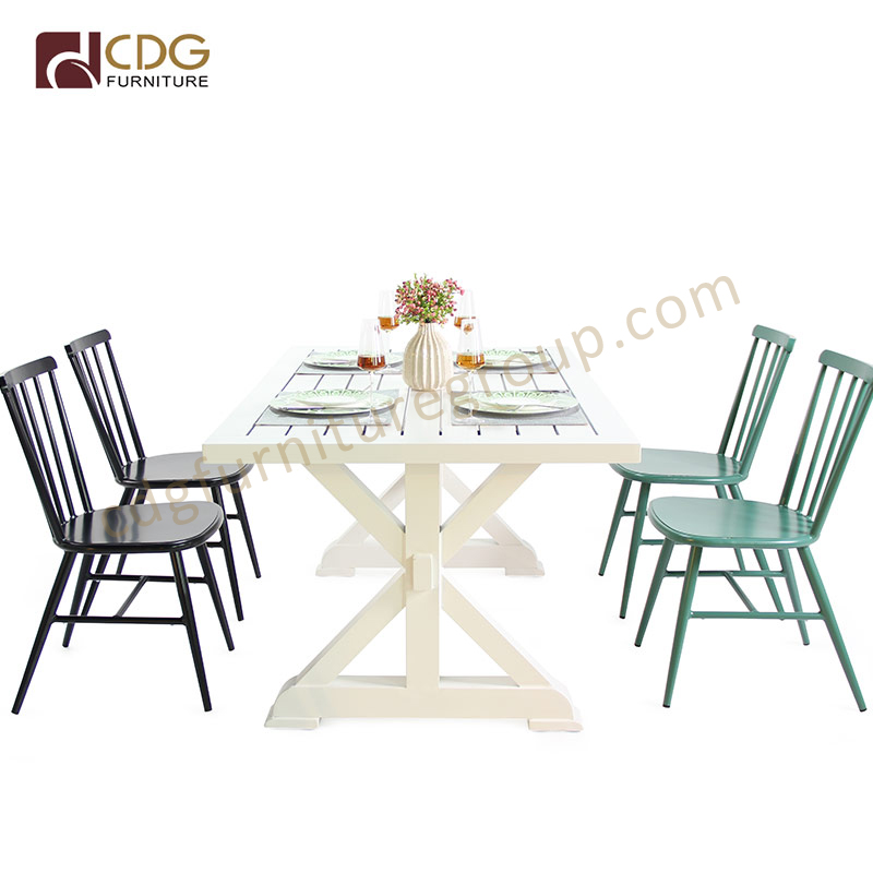 Classical Metal Table Chair Sets Durable X Shape Base Outdoor Dining Table-731DT-ALU-RE160
